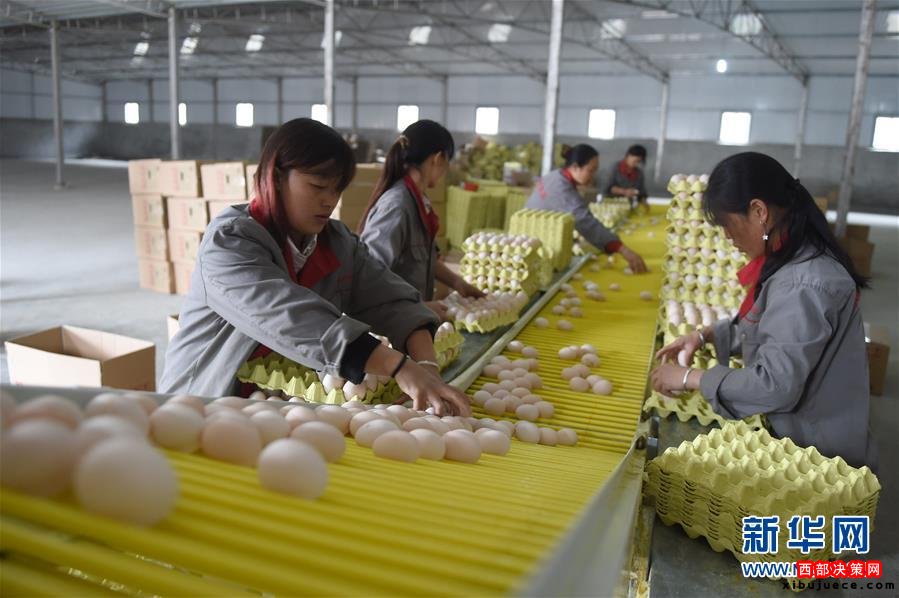 在貴州省畢節(jié)市七星關(guān)區(qū)五里坪村,當?shù)剞r(nóng)戶在一個屬于精準扶貧項目的養(yǎng)雞場內(nèi)分揀雞蛋(2015年11月15日攝)。畢節(jié)市自2014年開始“私人訂制”式精準扶貧工作,根據(jù)當?shù)刎毨魧嶋H情況為其制定扶貧方案,扶貧變“輸血”為“造血”。黨的十八大以來,以習近平同志為總書記的黨中央高瞻遠矚、深謀遠慮,以高度的政治感、使命感和責任感,把扶貧開發(fā)工作提升至治國理政新高度,廣泛凝聚社會各界力量,推進實施精準扶貧方略,為到2020年全面建成小康社會奠定堅實基礎(chǔ)。按照中央部署,通過產(chǎn)業(yè)扶持、轉(zhuǎn)移就業(yè)、易地搬遷、政策兜底等方式,到2020年將實現(xiàn)7017萬農(nóng)村貧困人口脫貧目標。新華社記者 潘昱龍 攝