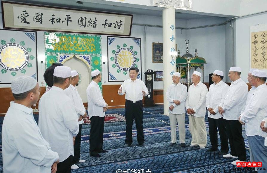 新華網(wǎng)北京7月19日電習(xí)近平總書記19日上午來到寧夏回族自治區(qū)銀川市新城清真寺了解宗教活動開展情況。在禮拜大殿,習(xí)近平與寧夏伊斯蘭教界人士親切交流,通過他們向廣大穆斯林群眾致以親切問候和良好祝愿。習(xí)近平說,我國的各民族和宗教是在5000多年的文明史中孕育發(fā)展起來的,只有落地生根才能生生不息。習(xí)近平希望大家繼續(xù)發(fā)揚愛國愛教傳統(tǒng),在脫貧致富奔小康的道路上發(fā)揮積極作用。在場的伊斯蘭教界人士表示,將認(rèn)真貫徹落實全國宗教工作會議精神,既念好古蘭經(jīng),又念好致富經(jīng),為國家發(fā)展?fàn)I造和諧的環(huán)境。(文字:新華社記者霍小光,攝影:新華社記者鞠鵬、李濤據(jù)新華社“新華視點”微博報道)