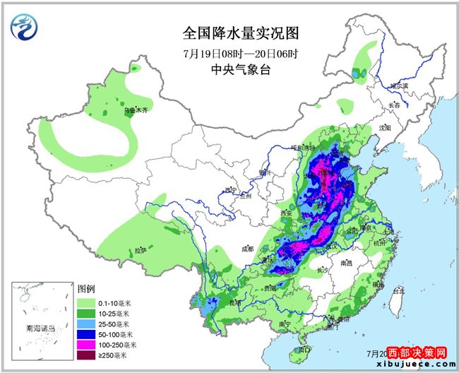 19日,華北、黃淮、江漢等地出現(xiàn)大范圍強降雨,50毫米以上的暴雨面積達63.5萬平方公里,其中河北南部、河南北部、湖北中部和西部等地出現(xiàn)250毫米以上的特大暴雨,山西、河北、湖北的17個縣市日降雨量突破歷史極值。中央氣象臺今晨繼續(xù)發(fā)布暴雨橙色預警,預計北京、天津、河北中東部、遼寧中南部等地仍將有暴雨或大暴雨天氣。