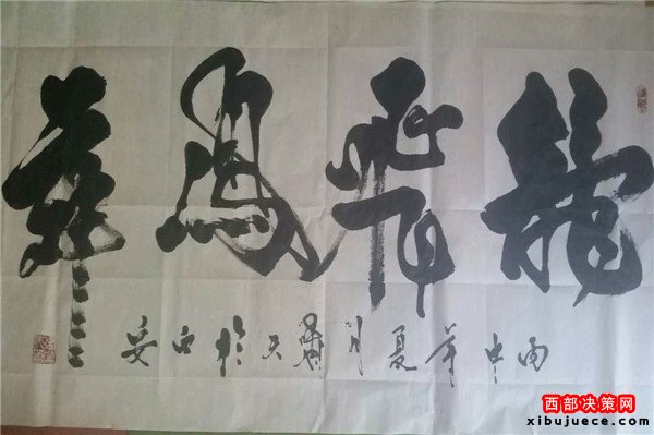 龍乃華人想象中最尊貴、最吉祥之物。生活之中無所不在,上下五千年,仍一以貫之,舉世無與倫比。華人更以龍的傳人自居,一旦風(fēng)起云涌,海生駭浪,則龍卷風(fēng)云,霞光萬丈。其“一筆龍”書法作品將書法和繪畫非常巧妙的而高度的融合,依易經(jīng)智慧,集意念、氣功為一體,運(yùn)筆如神,酬勁有力,一氣呵成,氣勢磅礴,形象逼真。整個字體呈現(xiàn)出一條蒼龍騰躍飛天之勢,寓意了中國龍騰飛吉祥的福兆,更展現(xiàn)了中華民族不屈不饒的民族精神。