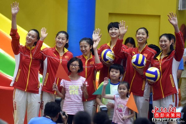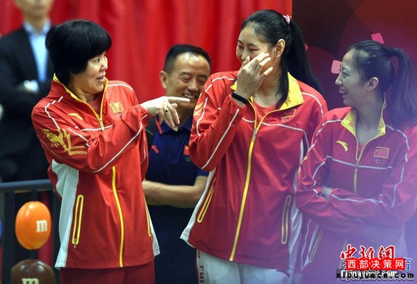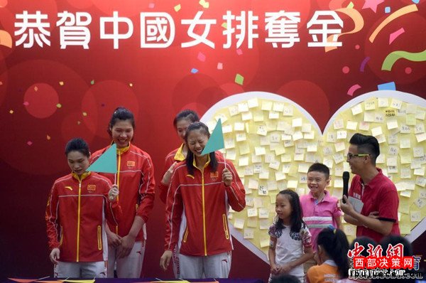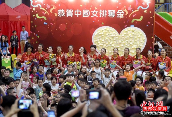 北京時間8月28日,女排隊員在香港與市民見面。見面會上女排姑娘與當(dāng)?shù)貎和M(jìn)行了互動游戲,女排主教練郎平幽默扮鬼臉令人捧腹大笑。