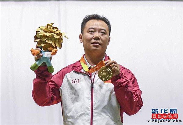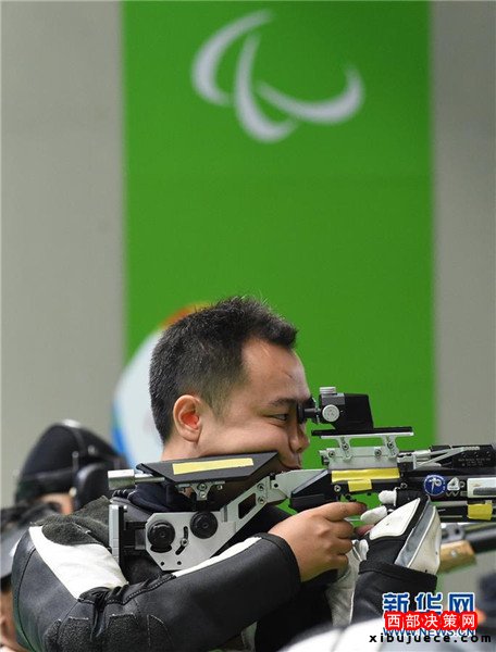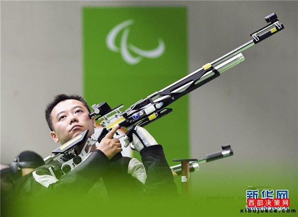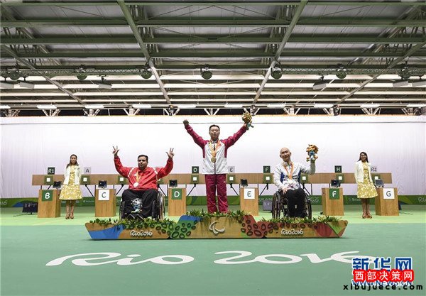 9月8日,董超在比賽后慶祝。當日,在2016年里約殘奧會射擊R1-SH1級別男子10米氣步槍站姿決賽中,中國選手董超以205.8環(huán)的成績奪得冠軍。