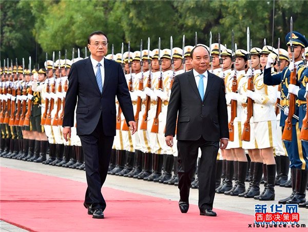 9月12日,國(guó)務(wù)院總理李克強(qiáng)在北京人民大會(huì)堂同來華進(jìn)行正式訪問的越南總理阮春福舉行會(huì)談。