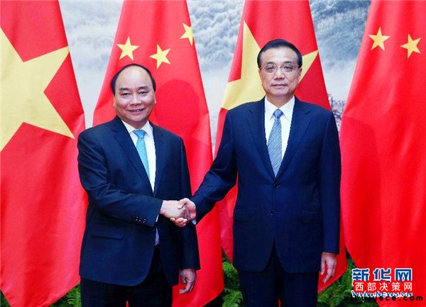 李克強(qiáng)和越南總理阮春福親切握手