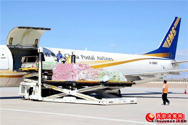 “密作”哈密古棗貢瓜正往郵政專機(jī)上裝運(yùn)。