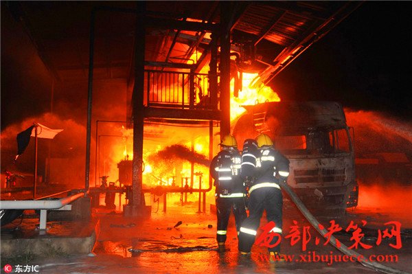 2016年10月11日晚19時(shí)06分,四川德陽廣漢市小漢鎮(zhèn)團(tuán)結(jié)村天舟航空發(fā)動(dòng)機(jī)燃料科技有限公司內(nèi)一輛油罐車突然發(fā)生燃燒爆炸。事故發(fā)生后,德陽消防先后調(diào)派5個(gè)中隊(duì)、22輛各類車輛、95名官兵趕赴現(xiàn)場處置。