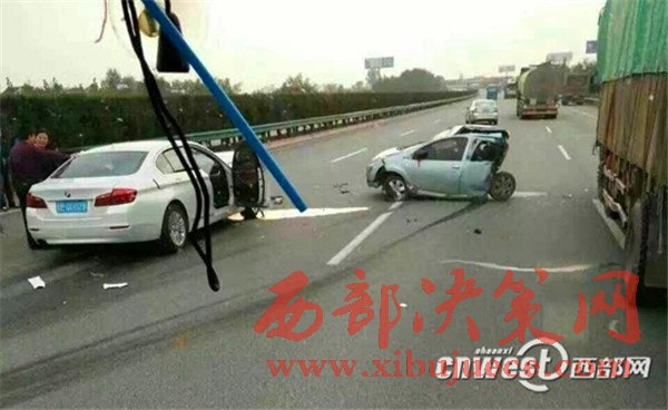 10月16日下午5點左右,西寶高速楊凌西至扶風絳帳段,一輛牌照為甘EQ0029的白色寶馬小轎車與其前方行駛的一輛陜AJ835R的銀色比亞迪轎車發(fā)生追尾事故,事故造成比亞迪轎車內(nèi)乘坐的4人當場死亡,寶馬轎車內(nèi)一人經(jīng)送醫(yī)院搶救無效死亡,車禍現(xiàn)場慘烈。
