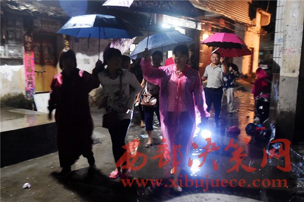 10月18日,欽州市東風社區(qū)的工作人員在轉(zhuǎn)移危房群眾。