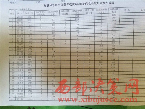 紀委王姓負責人告訴西部大開發(fā)雜志社記者菜價偏高確實從在,人已經(jīng)換掉,正在調查中,他們公司并未下過處罰,也未發(fā)現(xiàn)篡改考勤一事,不存在套取國家國有資金,并且給西部大開發(fā)雜志社記者拿出一塔資料,這就是陜蒙界收費站的考勤表,西部大開發(fā)雜志社記者看到考勤表上確實沒有任何涂改痕跡,其中陜蒙界收費站劉站長的上班天數(shù)也是23天。西部大開發(fā)雜志社記者想要查看工資發(fā)放表格時,得到結果還是無權了解。