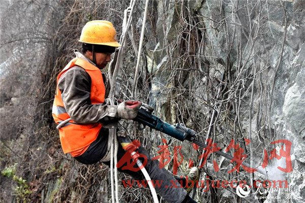 在重大地質(zhì)災(zāi)害隱患點(diǎn)治理現(xiàn)場,記者發(fā)現(xiàn)了一群“大山里的蜘蛛人”。他們在50米高的懸崖上作業(yè),用鐵絲網(wǎng)將大山“網(wǎng)住”,防止懸崖上的石塊掉落,保證國道上來往車輛的行車安全。記者注意到,整個(gè)作業(yè)期間,他們都用一根安全繩系住身體,吊在懸崖邊。初冬的北京寒風(fēng)已經(jīng)有些刺骨,在山區(qū)更是比市區(qū)低了幾度,而這些“蜘蛛人”也沒有進(jìn)行特別的保暖工作。