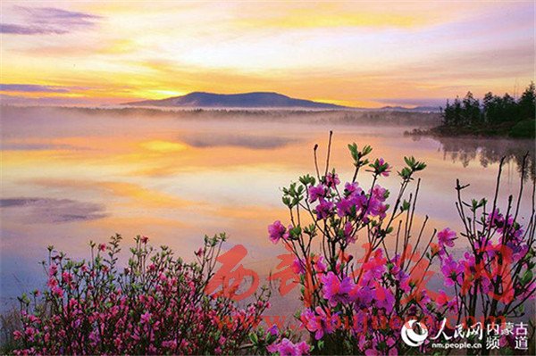 霞染初春阿爾山杜鵑湖