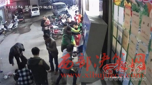 胡先生調取了事發(fā)時超市監(jiān)控視頻,華商報記者在視頻里看到:11月14日19時05分,一名婦女帶著小男孩走出超市,來到超市門口擺放的儲物柜取物。就在這名婦女剛拿出物品的一剎那,近兩米高的儲物柜突然倒下砸中兩人。巨大的儲物柜將孩子整個壓在了下面,婦女雙腿被壓住。周圍群眾幫助抬起了儲物柜。華商報記者注意到,從婦女取物到柜子倒下,事發(fā)經(jīng)過不到十秒鐘。