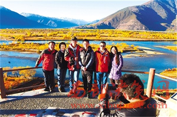 進(jìn)入11月份以來(lái),隨著降雨量的減少,尼洋河水開(kāi)始變得清澈見(jiàn)底,河畔大片大片的柳樹(shù)逐漸泛黃,在藍(lán)天白云的映襯下,形成了一道道秀麗的美景,十分迷人,吸引了大批游客和攝影愛(ài)好者前來(lái)游覽、攝影。圖為游客在風(fēng)景秀麗的尼洋河和雅魯藏布江交匯處合影留念。