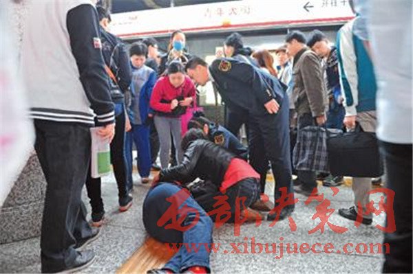 2015年5月13日早高峰時(shí)間段,沈陽地鐵1號(hào)線青年大街站站臺(tái),一名74歲的老人在人群中因擁擠而摔倒。老人對(duì)涉事人說:“我有老保,我不訛人”。