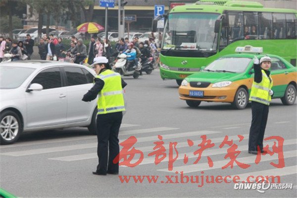 周日(20日)早高峰剛過,小寨十字上的交警正在示意由西向北行駛的車輛左轉(zhuǎn)。