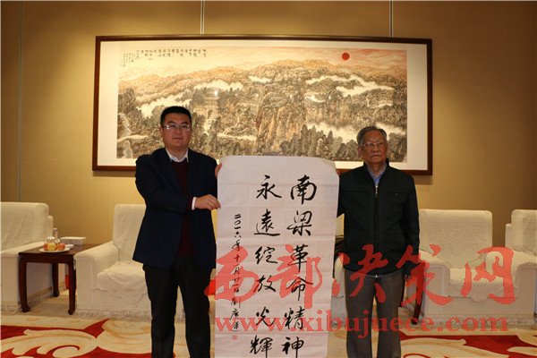 西部決策網(wǎng)訊(帥華鋒 杜杰 通訊員 趙高銪)11月21日,原全國政協(xié)常委、國家林業(yè)部常務(wù)副部長劉廣運,國家林業(yè)局老干局副局長、中國林業(yè)書法家協(xié)會副秘書長王德宗,人民日報海外版書畫藝術(shù)部主任助理、人民書畫藝術(shù)網(wǎng)外聯(lián)部副主任陳厚學(xué)一行,在慶陽市林業(yè)局、華池縣人民政府副縣長池軍以及南梁紅色景區(qū)建設(shè)管理局辦公室主任張全鈺、南梁革命紀念館館長聶明靜的親切陪同下,踏上陜甘邊革命根據(jù)地“紅色南梁”這片革命的熱土。