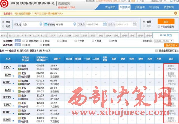 火車票暫售至12月29日。來(lái)自12306網(wǎng)站