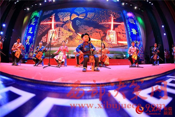 11月22日,博湖縣“祖魯節(jié)”晚會現(xiàn)場,當(dāng)?shù)厍嗌倌瓯硌蓠R頭琴齊奏《開都河》。