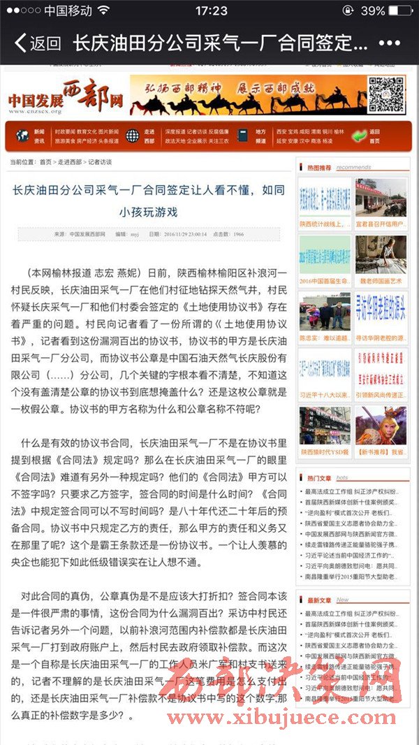 希望我們的央企長慶油田采氣一廠給我們合理的解釋和交待。對于此事本站記者持續(xù)追蹤報(bào)道。( 志宏 燕妮)