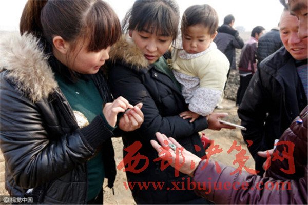 “我找到了一大串。”一村民歡呼。水里淘了淘,瞬間黑色的淤泥變成了十幾個(gè)銅錢。