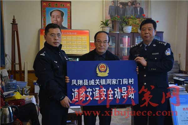 西部決策網(wǎng)訊(帥華鋒 李亮亮 通訊員 孟歡)12月8日,鳳翔交警大隊(duì)在鳳翔縣城關(guān)鎮(zhèn)豆腐村、糜桿橋鎮(zhèn)北水溝村、城關(guān)鎮(zhèn)周家門前三個(gè)村設(shè)立的農(nóng)村交通安全勸導(dǎo)站順利掛牌成立。首批勸導(dǎo)站是以村委會為依托,根據(jù)三個(gè)村的地貌、村落人群分散、道路里程較長等情況特點(diǎn),在鳳翔轄區(qū)公路沿線的3個(gè)行政村率先建立起勸導(dǎo)站示范點(diǎn)。