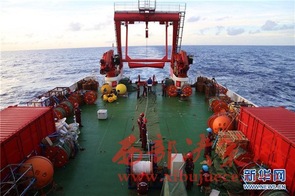 科考隊員在回收觀測設(shè)備(12月3日攝)。我國遠洋綜合考察船“科學”號正在西太平洋執(zhí)行潛標觀測網(wǎng)維護與升級任務(wù)。截至目前,科考隊員已獲取了140余件觀測設(shè)備連續(xù)1年的現(xiàn)場數(shù)據(jù),維護了8套深海潛標,并重新布放至西太平洋海域。