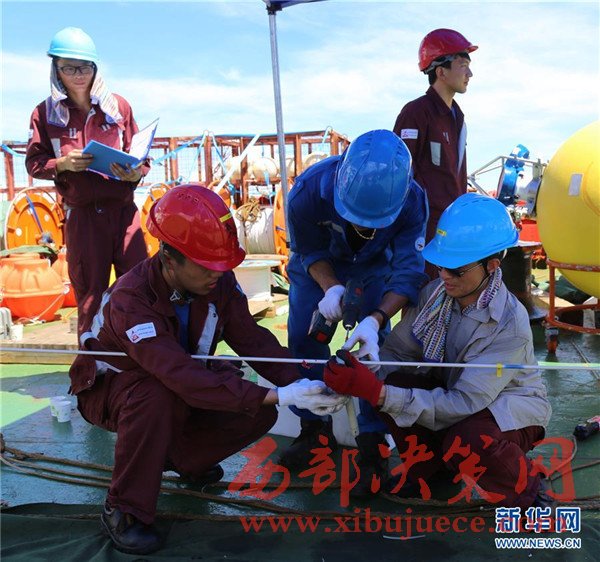 科考隊員在進行深海潛標布放和回收作業(yè)培訓(11月12日攝)。我國遠洋綜合考察船“科學”號正在西太平洋執(zhí)行潛標觀測網(wǎng)維護與升級任務(wù)。截至目前,科考隊員已獲取了140余件觀測設(shè)備連續(xù)1年的現(xiàn)場數(shù)據(jù),維護了8套深海潛標,并重新布放至西太平洋海域。