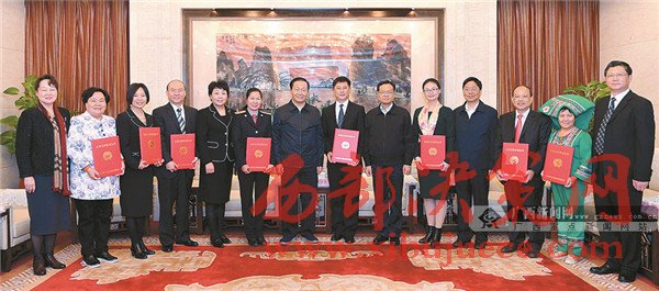 在日前中央文明委舉行的第一屆全國文明家庭評選表彰活動中,廣西8戶家庭獲此殊榮。12月13日,自治區(qū)黨委書記彭清華、自治區(qū)主席陳武在京看望了剛參加過表彰大會的廣西受表彰家庭代表,向大家表示祝賀。