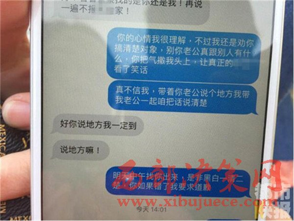 王女士說自己今年三十多歲,而聽對方的聲音判斷,女孩大概20多歲,現(xiàn)在竟被小自己十歲的女孩錯當(dāng)小三,實(shí)在滑稽可笑。而最讓王女士不能忍受的是,對方發(fā)來王女士的微信頭像照片,并發(fā)來短信說:這個是你吧,警告你別犯賤,再發(fā)現(xiàn)你倆聯(lián)系,下次就不是打電話了,見了你把你往死里打。