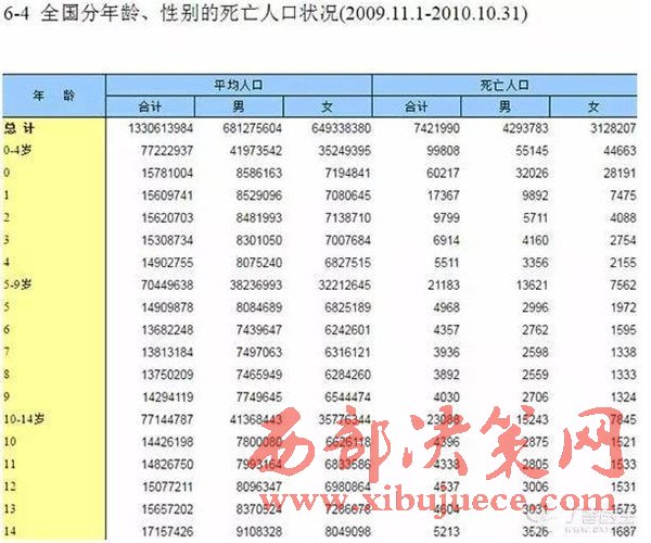 我們不妨先來看一看國家統(tǒng)計局2010 發(fā)布的年全國第六次人口普查的數(shù)據(jù)。