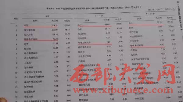 我們再來看這份國家衛(wèi)計委和中國疾病預(yù)防中心發(fā)布《中國死因數(shù)據(jù)集2014》,這是我國最權(quán)威的死因數(shù)據(jù)報告,其中兒童各年齡段的死亡率寫得很清楚。