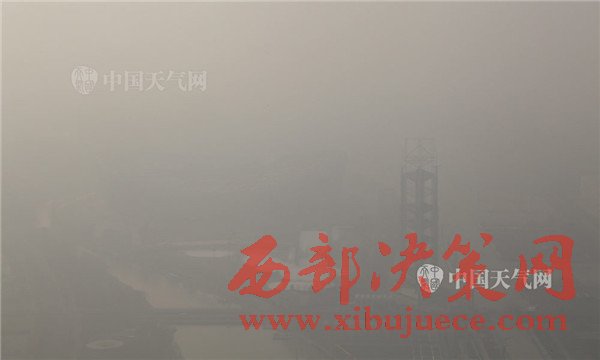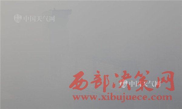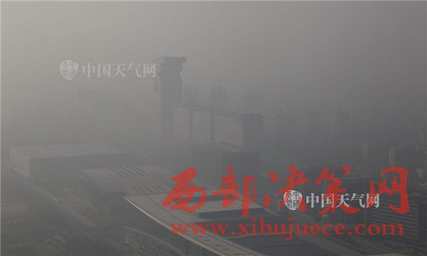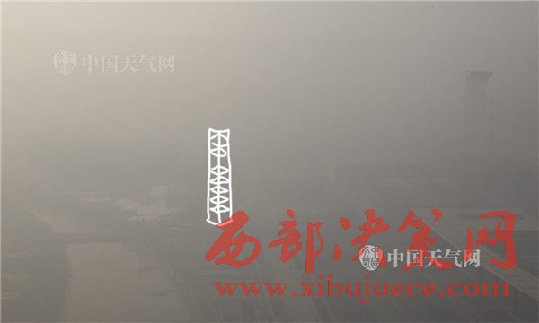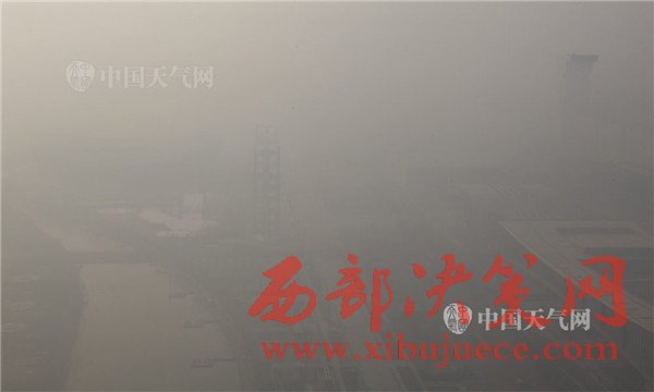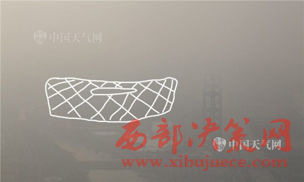 2016年12月19日早晨,北京持續(xù)空氣重污染。記者登上246.8米高的北京奧林匹克塔,鳥瞰北京城,發(fā)現(xiàn)咫尺之遙的鳥巢、水立方等奧運場館和城市地標建筑被霾“吞沒”,消失不見。圖為鳥巢。