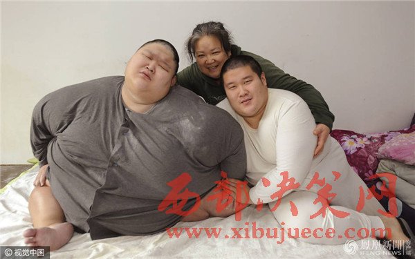 老二的生活基本能夠自理,老大張航郡卻很愁人。當(dāng)日9時(shí),老大剛剛早起。兩米寬的床,他占據(jù)了—大半。張航郡的體重至少有500斤,沒有—個(gè)秤能準(zhǔn)確地量出他的體重。腰圍九尺多,不敢說是全國(guó)最胖的,但在沈陽絕對(duì)是第—胖。500多斤,生活中是什么樣的狀態(tài)?記者看到,張航郡家里的東西大部分是特制的。九尺多的腰,哪有賣這個(gè)型號(hào)衣服的啊?普通的衣服根本不能穿,必須特制。洗臉、上廁所這些生活基本問題都得馬女士幫助才能完成。“別看他22歲了,智力水平—直停留在1歲左右。叫‘媽媽’都是這幾年才學(xué)會(huì)的。”張航郡與馬女士的交流會(huì)用喊的方式,喊些只有馬女士才能聽得懂的語言。