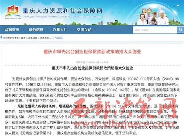 日前,市人社局會(huì)同人行重慶營(yíng)管部、市財(cái)政局研究出臺(tái)了《關(guān)于調(diào)整創(chuàng)業(yè)擔(dān)保貸款政策支持創(chuàng)業(yè)就業(yè)的通知》,對(duì)借款人的資格條件進(jìn)行了細(xì)化,鼓勵(lì)區(qū)縣出臺(tái)配套政策,強(qiáng)化對(duì)科技型企業(yè)的支持,突出扶持的差異性,還健全了貸款工作四項(xiàng)機(jī)制。