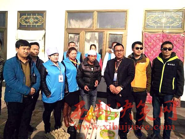 1月13日,寧夏海興義工聯(lián)合會銀川辦事處的工作人員來到銀川市賀蘭縣南梁臺子鐵東村、鐵西村,慰問當?shù)?戶孤寡貧困家庭,捐贈米面油和棉衣等生活物品,  “大娘,還有半個月就過年了,這是咱們企業(yè)的一點心意,祝您老身體健康,吉祥如意”。這次慰問空巢老人和貧困家庭的單位有:銀川培訓學院、銀川美年大健康體檢醫(yī)院、海原馬軍飯莊、搏港旅游公司、寧夏雙玉農(nóng)業(yè)科技有限公司、寧夏塞杞源苗木專業(yè)合作社。今年年初,他們根據(jù)南梁臺子鄉(xiāng)提供的貧困戶名單,結(jié)合入戶走訪,最終確定了馬寶林、馬萍霞等8戶殘疾、孤寡貧困家庭。由寧夏蕊杰伯港旅游有限公司、 銀川美年大健康體檢醫(yī)院等7家協(xié)會成員企業(yè)共同出資購買生活物品,逐戶慰問,反哺社會。