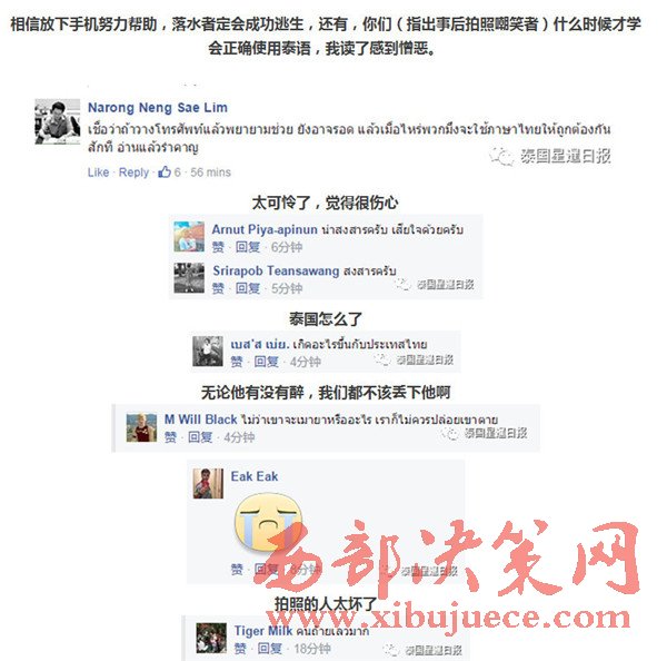該網友表示,對于朋友喝酒后跑出大街,家人朋友絕對有責任,但面對一個即將溺亡的人,為何路人如此冷漠。警方通過錄像及臉書線索聯系了圍觀人群,他們均表示自己不會游泳,并已及時報警。警方震怒回應,不是叫你跳下去游泳救人,伸手就可以了,伸手都不會嗎?