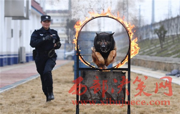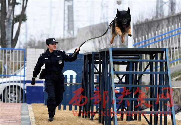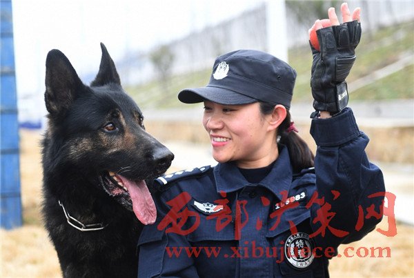 2月5日,劉慧和“威利”在警犬基地訓練。