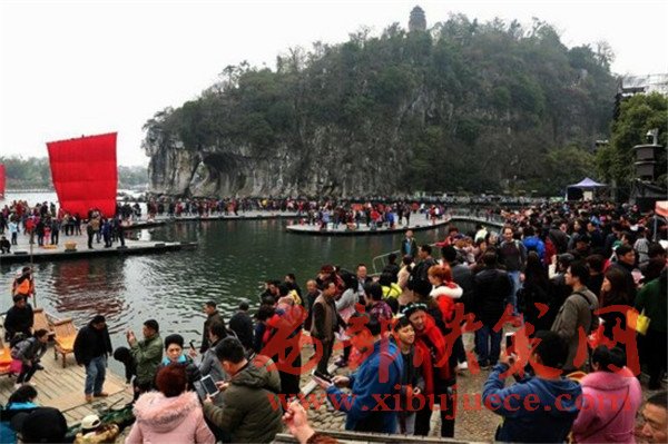 廣西桂林市象山景區(qū)內(nèi)人頭攢動(dòng)