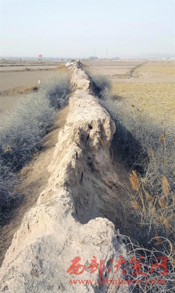 省政府立的明長(zhǎng)城景泰段全國重點(diǎn)文物保護(hù)碑。 本文圖均為 甘肅日?qǐng)?bào) 圖春節(jié)期間,記者來到這段明長(zhǎng)城后看到,這段由黃土夯筑而成的長(zhǎng)城,在歷經(jīng)400多年的風(fēng)雨侵蝕和人為破壞后,已成為斷斷續(xù)續(xù)、高低不一的“土壟子”。即便間或殘存有一大段連續(xù)的城墻,也被兩側(cè)的農(nóng)田“啃噬”得只剩下一兩米高寬。