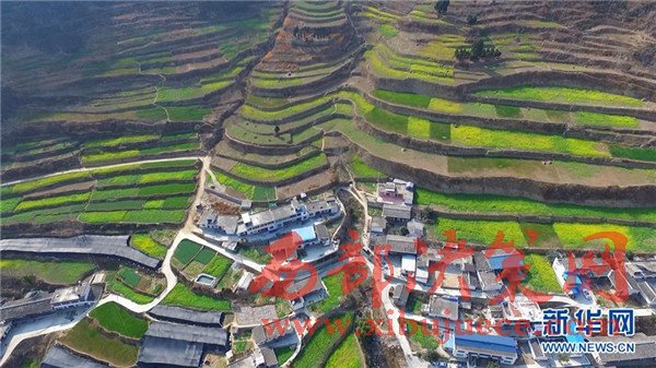 甘肅省隴南市文縣玉壘坪村山坡上的油菜花已開(kāi)始綻放。隨著早春臨近,甘肅省隴南市文縣碧口水庫(kù)兩岸的油菜花開(kāi)始綻放,為碧波蕩漾的白龍江畔點(diǎn)綴上金黃的色彩。