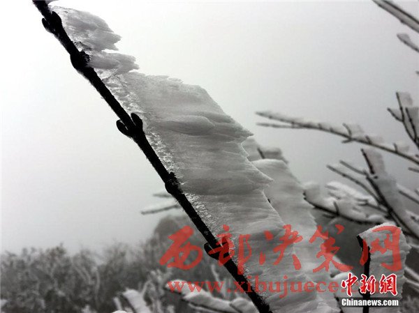 原標(biāo)題:廣東連山縣金子山再降春雪現(xiàn)奇特冰桂