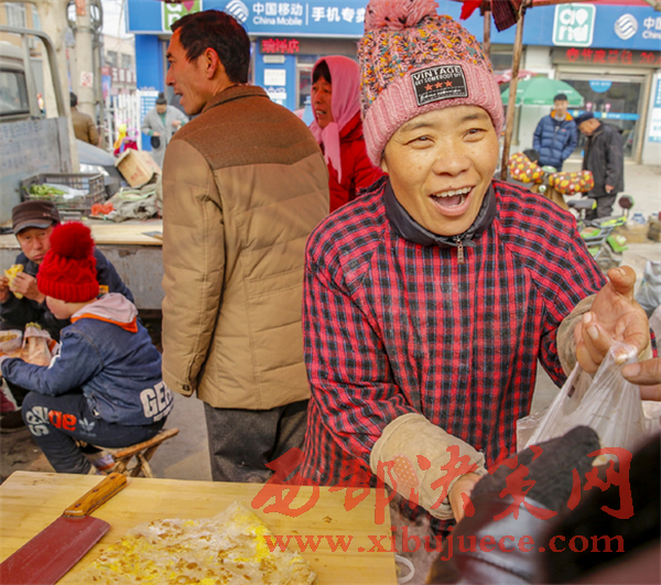 趕集餓了的鄉(xiāng)親們要一碗豆腐腦,二斤大餅,一家三口吃個飽飽的。
