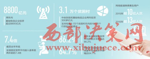 陳肇雄介紹,兩年來,工信部會同有關(guān)部委,扎實(shí)推進(jìn)網(wǎng)絡(luò)提速降費(fèi)相關(guān)工作落實(shí)。圍繞網(wǎng)絡(luò)提速,一是深入推進(jìn)寬帶中國戰(zhàn)略。兩年內(nèi)基礎(chǔ)電信企業(yè)投資超過8800億元,國家發(fā)改委安排中央預(yù)算內(nèi)投資10億元,專項(xiàng)建設(shè)基金480億元,建成了全球規(guī)模最大的固定光纖和移動4G網(wǎng)絡(luò)。二是加快實(shí)施電信普遍服務(wù)。中央財(cái)政和基礎(chǔ)電信企業(yè)兩年投資300多億元,支持包括3.1萬個(gè)貧困村在內(nèi)的10.1萬個(gè)行政村光纖建設(shè)。三是優(yōu)化互聯(lián)網(wǎng)骨干網(wǎng)網(wǎng)絡(luò)結(jié)構(gòu)。擴(kuò)容骨干網(wǎng)網(wǎng)間互聯(lián)帶寬1562G,新增3個(gè)互聯(lián)網(wǎng)骨干直聯(lián)點(diǎn),總數(shù)達(dá)到了13個(gè)。截至2016年年底,全國固定寬帶平均接入速率達(dá)到49M,是兩年前的7.4倍。光纖寬帶用戶占比從34.1%提升到76.6%,進(jìn)入全球前三位。根據(jù)中國寬帶聯(lián)盟發(fā)布的數(shù)據(jù),我國移動寬帶網(wǎng)絡(luò)用戶平均體驗(yàn)速率已經(jīng)從3G的3.9M提升到目前4G的11.9M。4G用戶已經(jīng)達(dá)到7.7億戶,占全球4G用戶的一半以上。