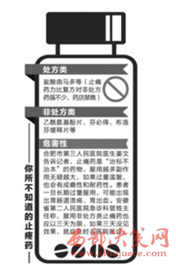 得知小唐曾吃過(guò)“鹽酸曲馬多”這一類強(qiáng)效的非麻醉性中樞鎮(zhèn)痛藥,姜文稱,該藥是處方藥,必須由必須憑執(zhí)業(yè)醫(yī)師或執(zhí)業(yè)助理醫(yī)師處方才可調(diào)配、購(gòu)買和使用,藥店禁售。昨天下午,記者走訪了省城東二環(huán)路、巢湖南路、和平路等路段6家藥房,發(fā)現(xiàn)6家藥房均未售鹽酸曲馬多這種處方藥。“你要是偏頭痛,可以服用復(fù)方對(duì)乙酰氨基酚片。”在東二環(huán)路一家藥房,一名女營(yíng)業(yè)員拿出一盒該藥品告訴記者,“這種止痛藥藥性也不差,如果你吃了幾片感覺不管用,可以多吃些,感覺到止痛了停服就行。”和平路一家藥房,營(yíng)業(yè)員稱患者因人而異,既然只是止痛,沒(méi)有必要嚴(yán)格按照藥盒上的醫(yī)囑服用。