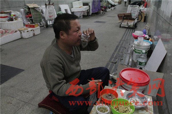 81歲的付林林現(xiàn)在晚上不出去撿廢品,一個(gè)同情他的餐館老板,每天給他送飯菜。