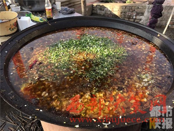 12月4日, 戶縣渭豐鎮(zhèn)元二村,村民們正在興高采烈的烹制著美味大餐,熱鬧非凡,頗有一種過(guò)大年的氣氛。熱氣騰騰的臊子面出鍋了,這第一碗面當(dāng)然要親手端給今天這場(chǎng)特殊宴會(huì)的主角——百歲老人段奶奶。