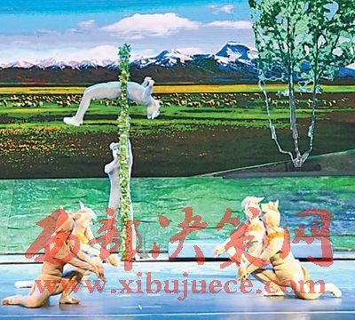 一個個驚險(xiǎn)刺激的雜技表演,一段段奔放激情的藏韻舞蹈,令觀眾目不暇接。27名玉樹歌舞演員,38名安徽雜技演員,在舞臺上高度默契,完美呈現(xiàn)了《雪豹王子》的藝術(shù)構(gòu)思。
