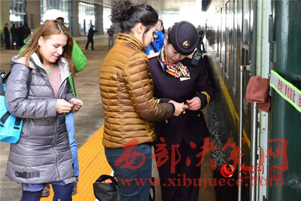 列車長(zhǎng)和“民族團(tuán)結(jié)一家親號(hào)”特快旅客列車
