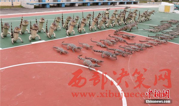 其中鱷魚標本32件為站姿,45件為爬行姿態(tài),最大的標本長度近2米。