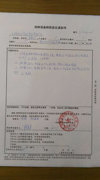 經(jīng)過特檢所現(xiàn)場(chǎng)檢驗(yàn),發(fā)現(xiàn)三部電梯鋼絲繩磨損嚴(yán)重,6號(hào)樓2單元中梯、北梯鋼絲均出現(xiàn)斷股,現(xiàn)場(chǎng)建議更換鋼絲繩,后出具特種設(shè)備檢驗(yàn)意見通知書,對(duì)于檢查出的問題要求立即停止使用。